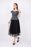 FJD71011 - Chân váy midi vải ren dáng Xoè hai lớp lót lụa cạp bo chun - PANTIO