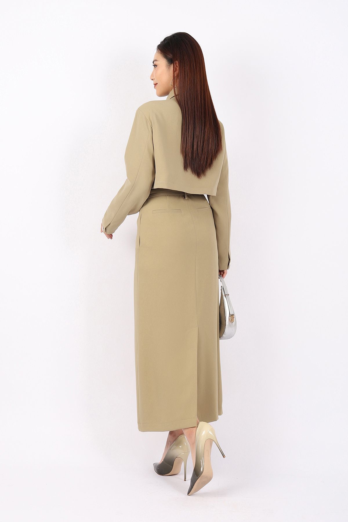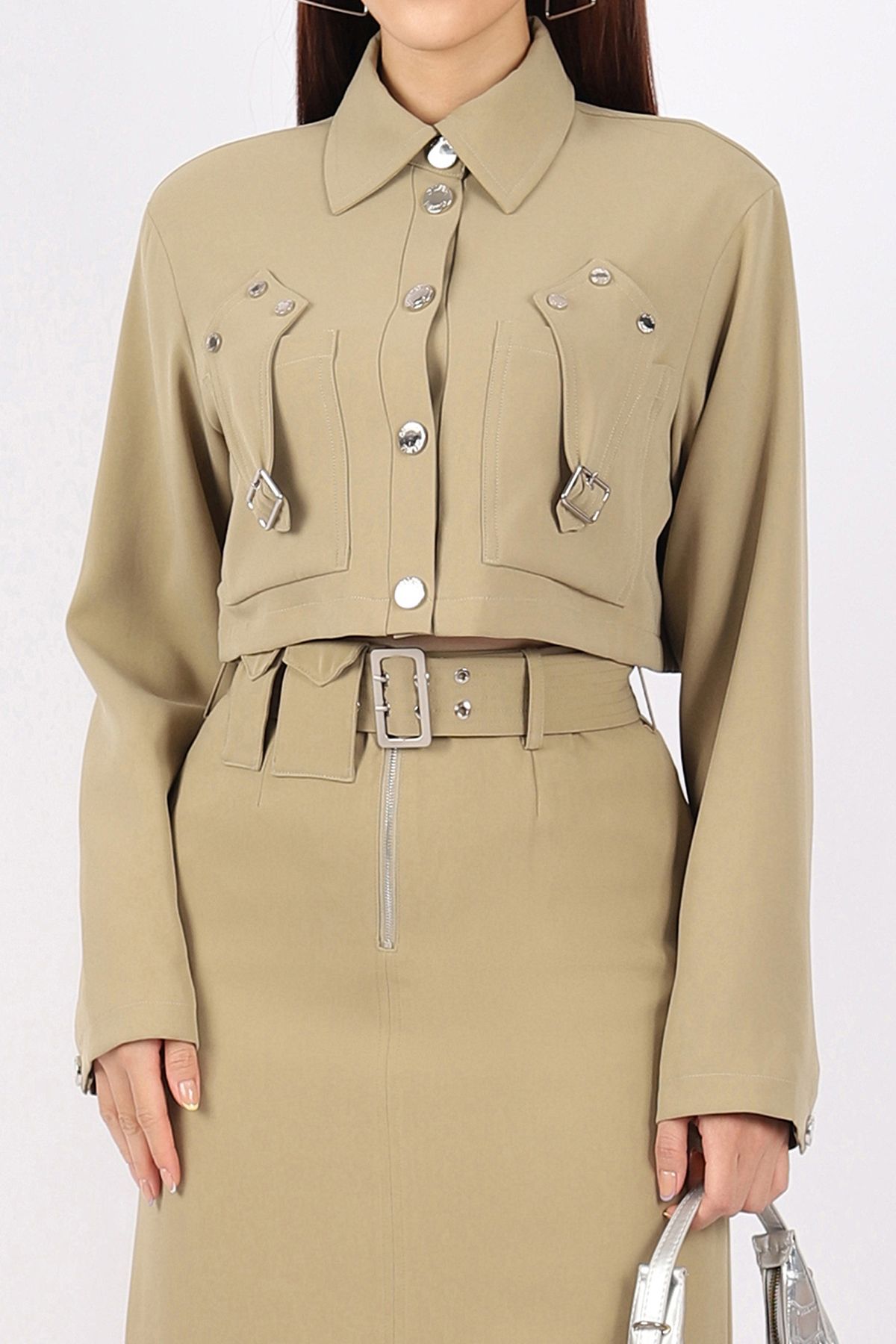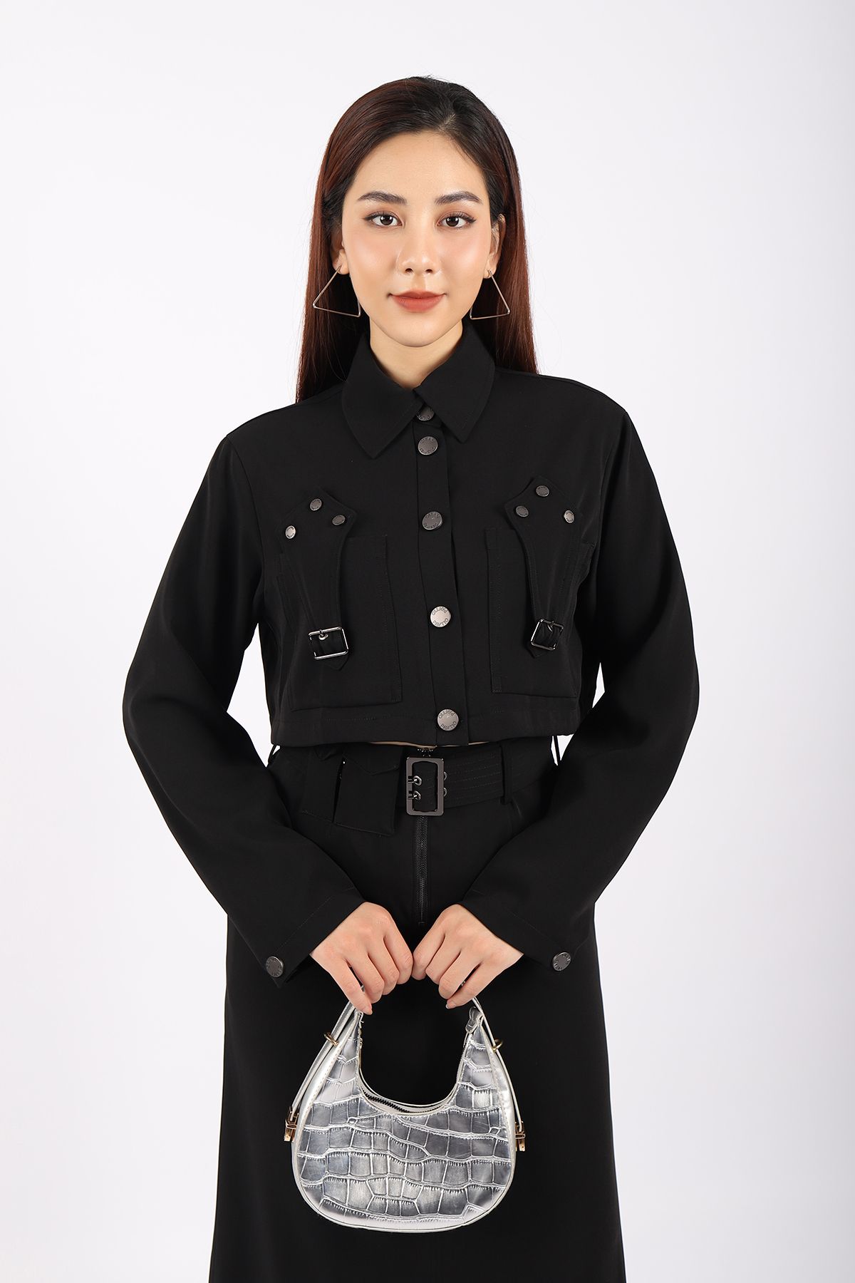 FKM7681 - Áo khoác dạo phố vải tuytsi dáng croptop có lót vải lụa gió cổ đức thân phối khuy đính tạo kiểu - PANTIO