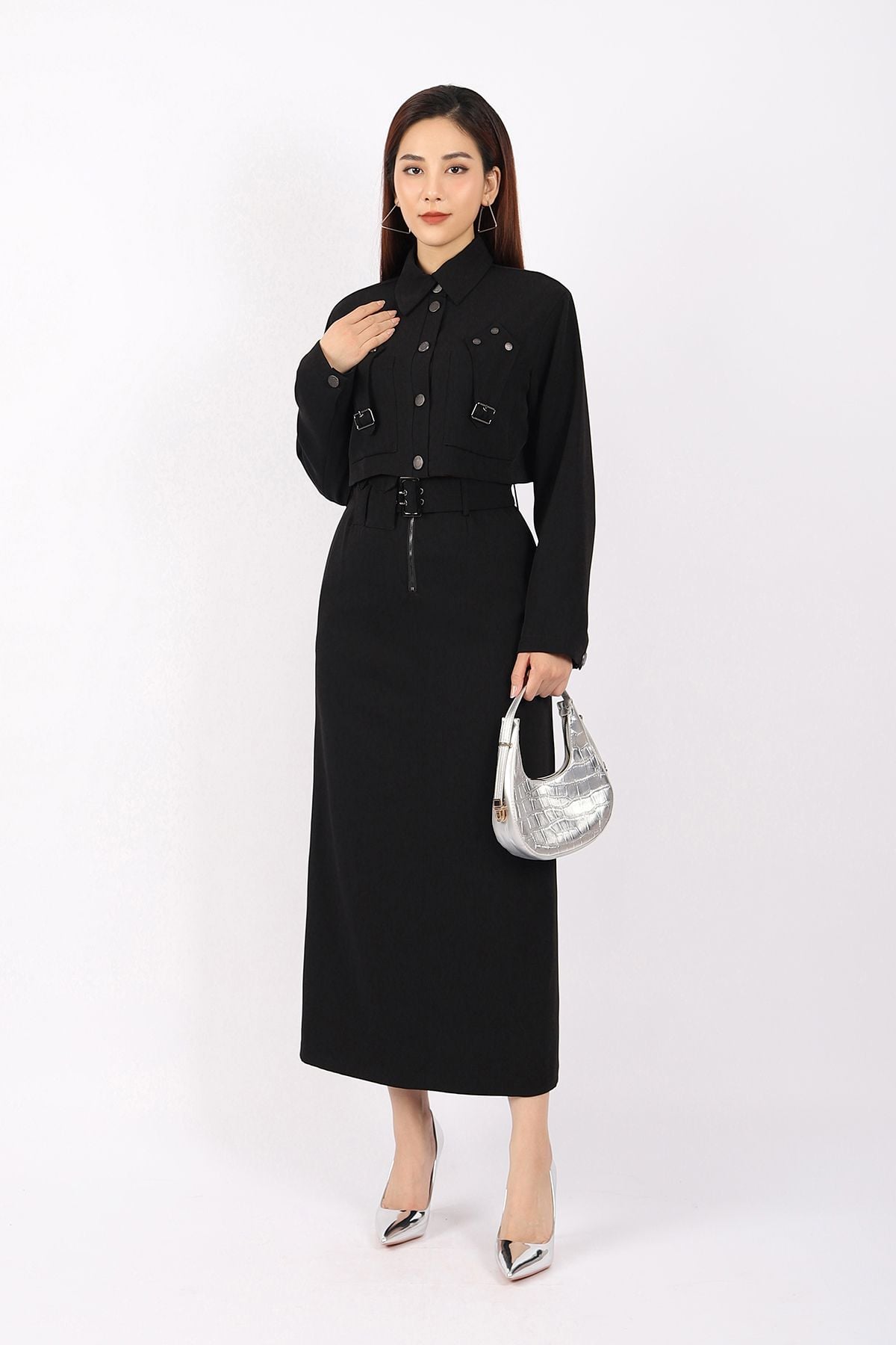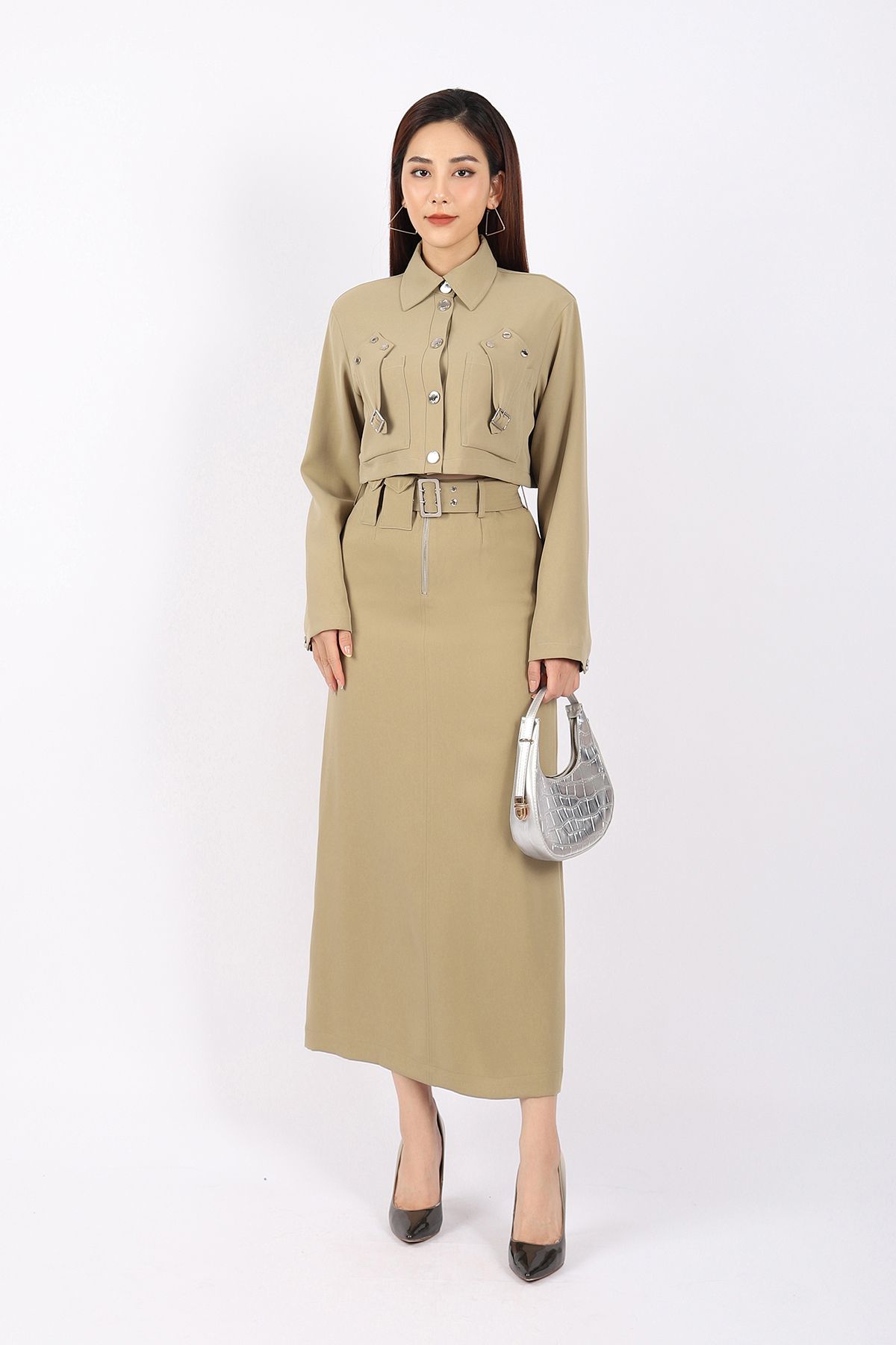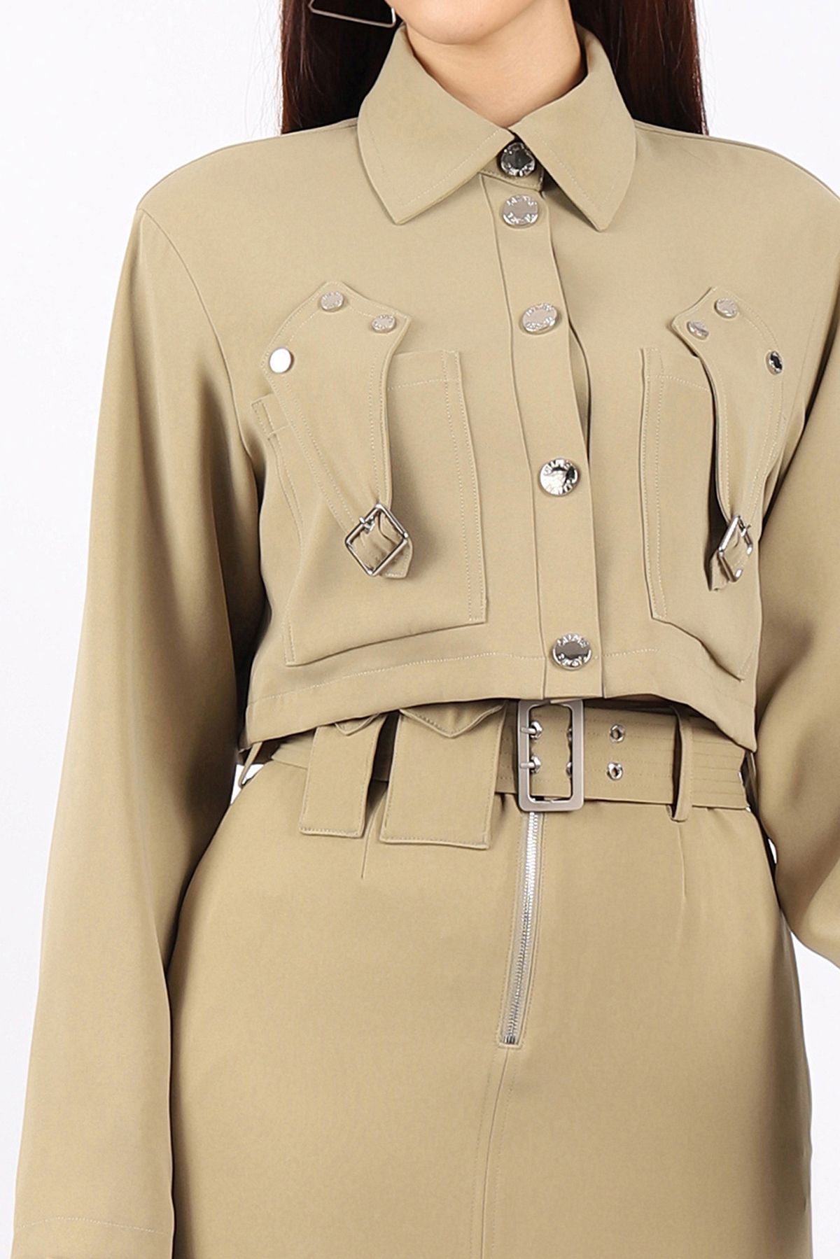 FKM7681 - Áo khoác dạo phố vải tuytsi dáng croptop có lót vải lụa gió cổ đức thân phối khuy đính tạo kiểu - PANTIO