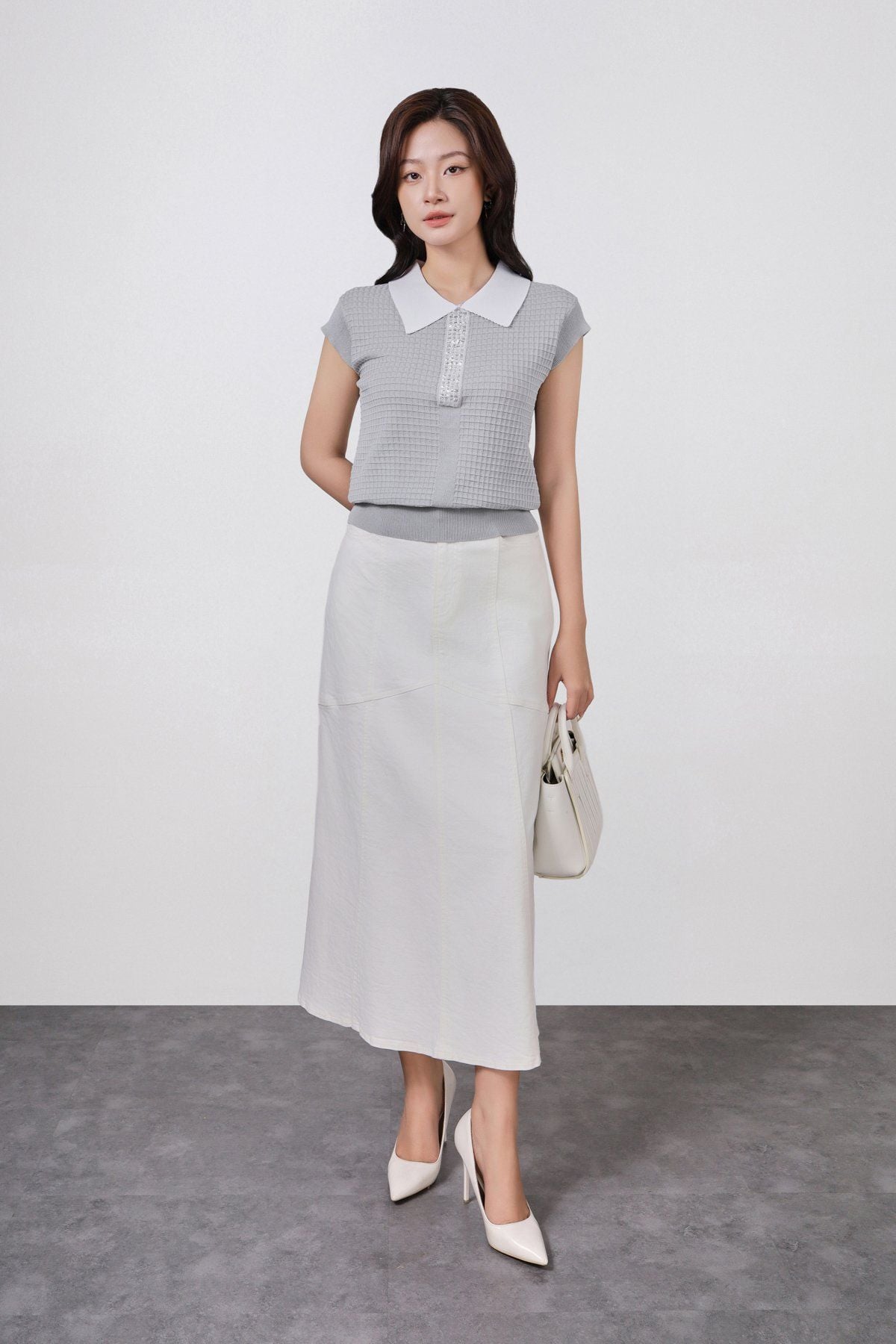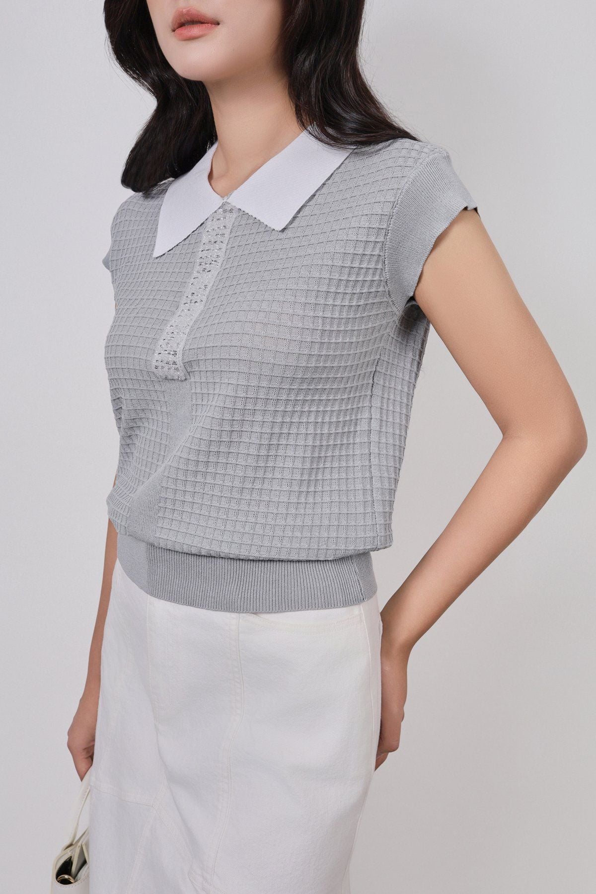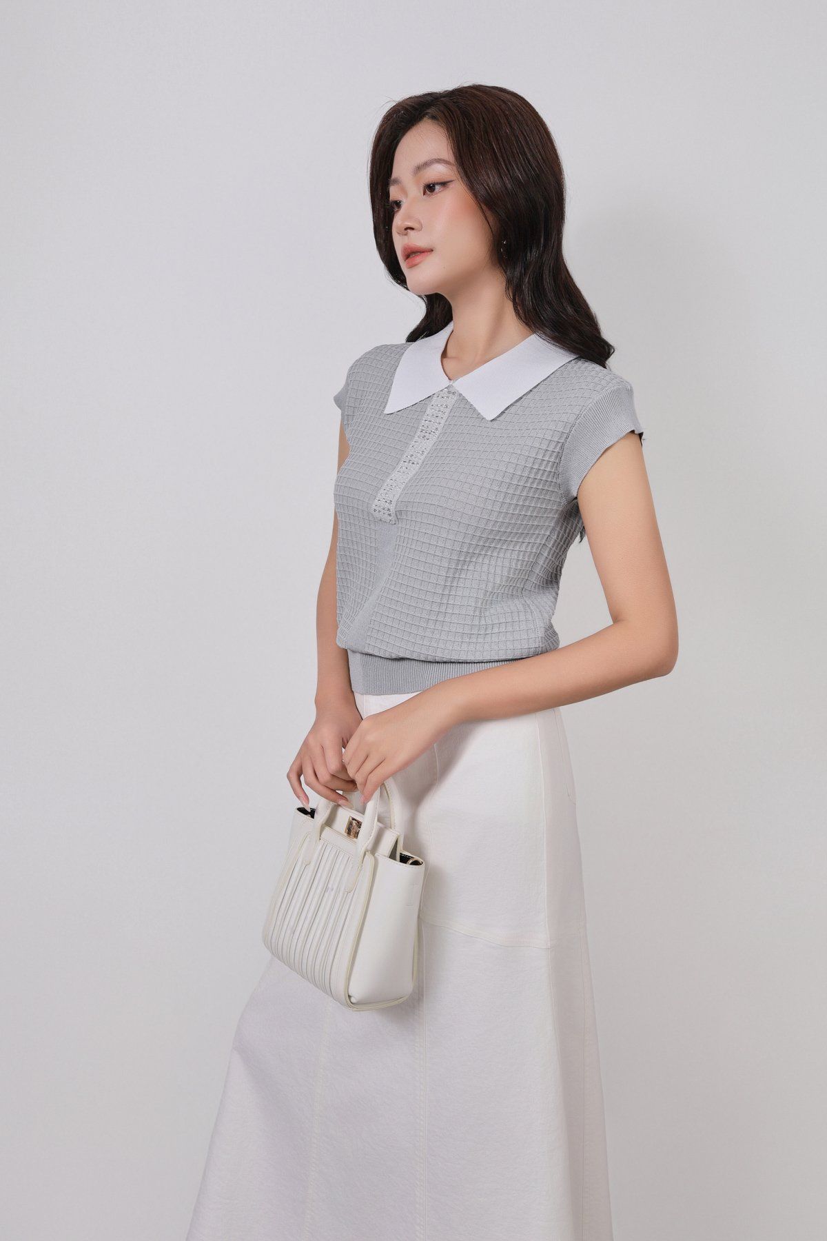 FOL591 - Áo len dệt kim cao cấp dáng suông cổ bẻ tay chờm cổ áo đính đá thời trang gấu áo bo chun ôm tạo kiểu - PANTIO