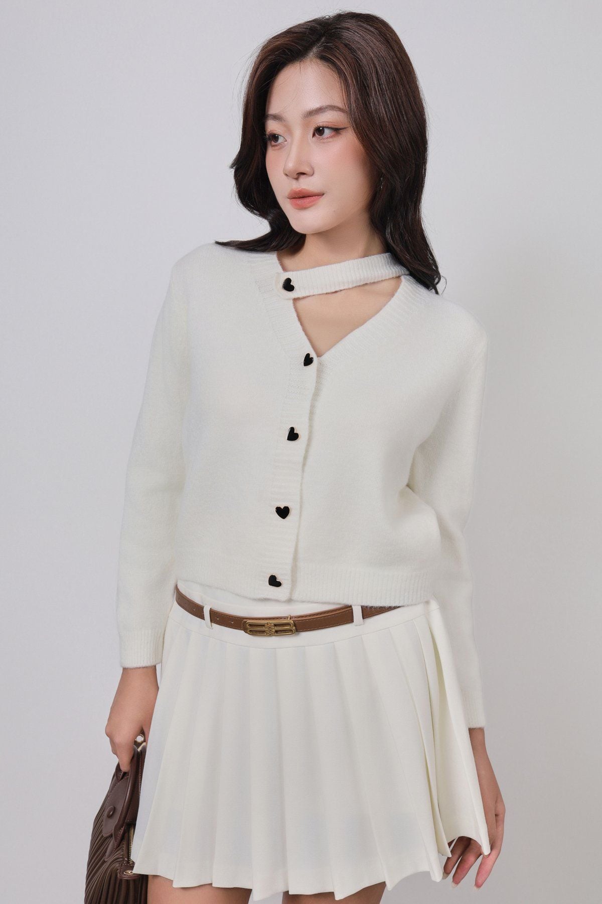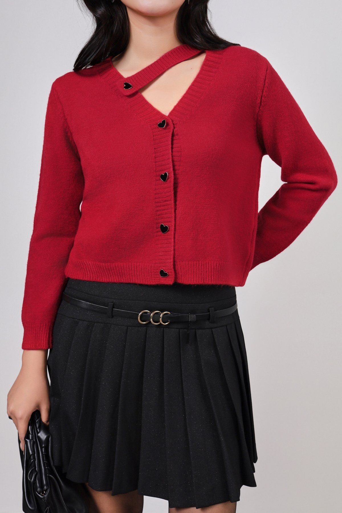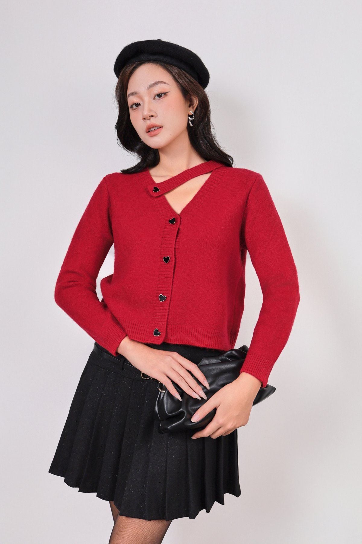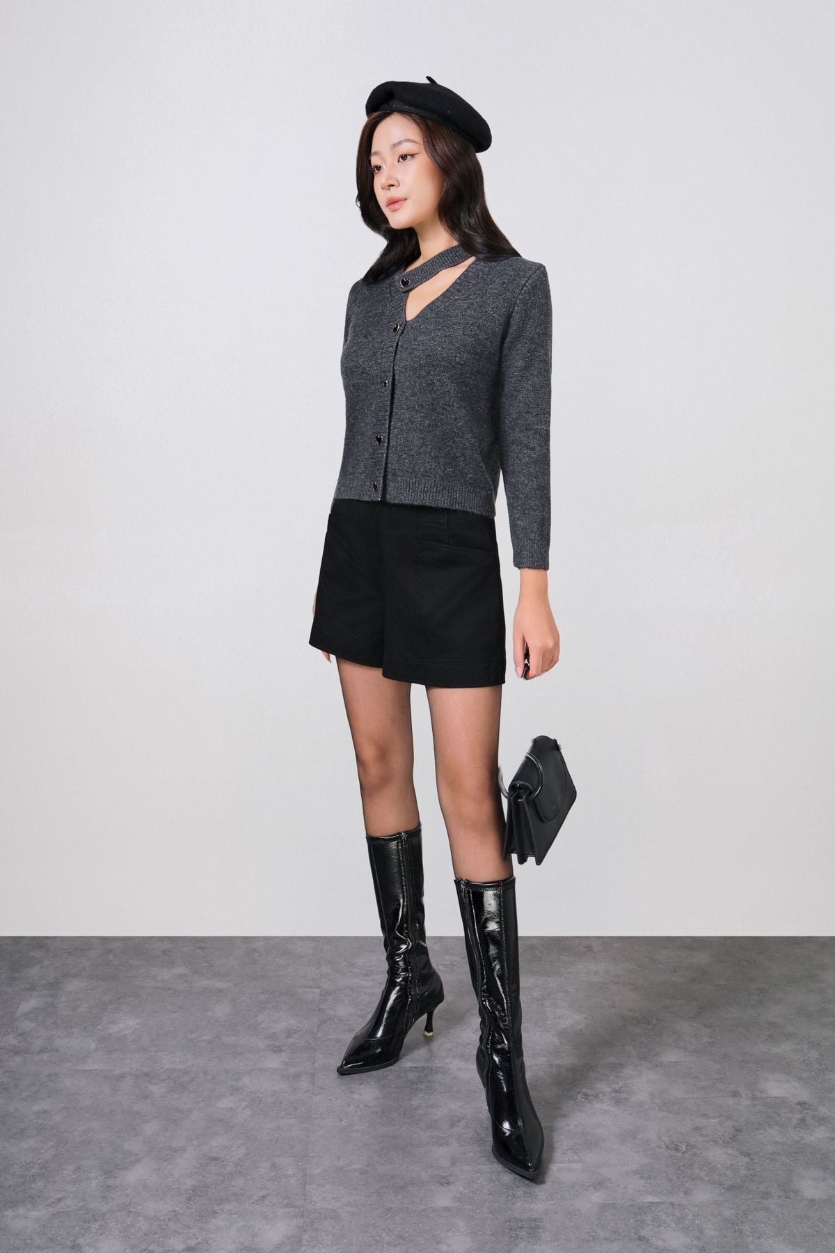 FOL617 - Áo len thời trang cao cấp dáng suông cổ xẻ V phối dây lệch dài tay thân áo phối khuy thời trang - PANTIO