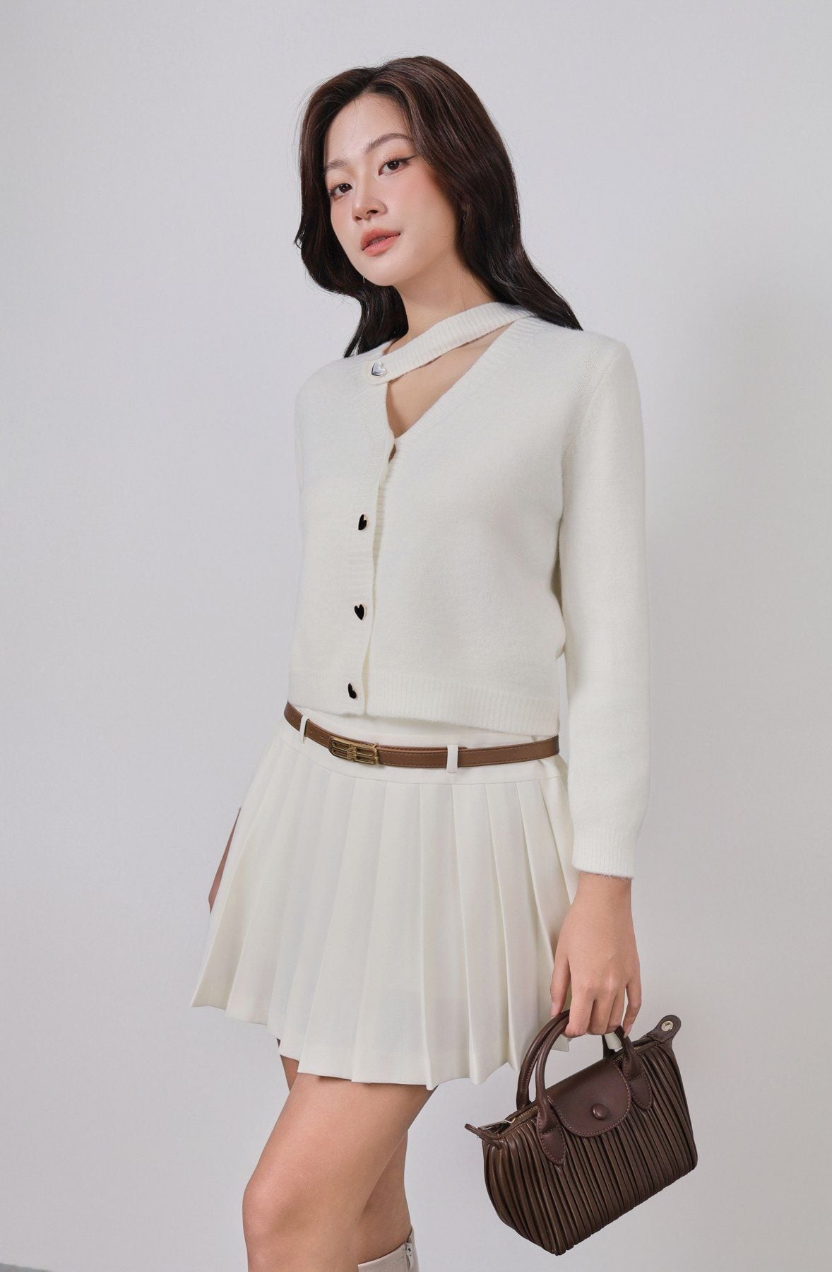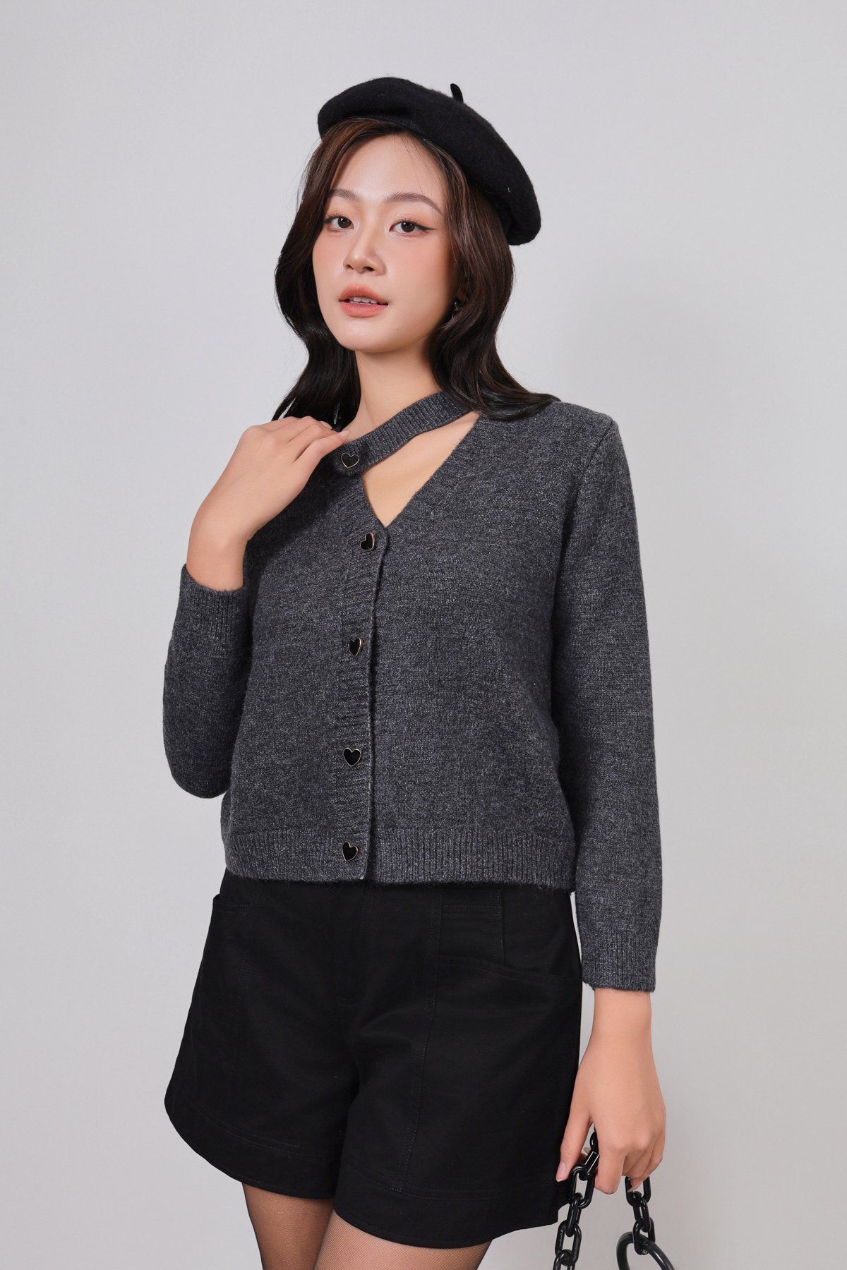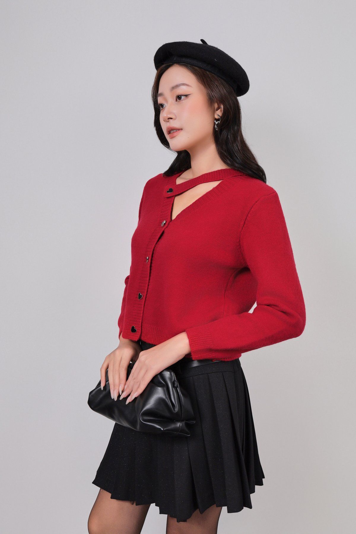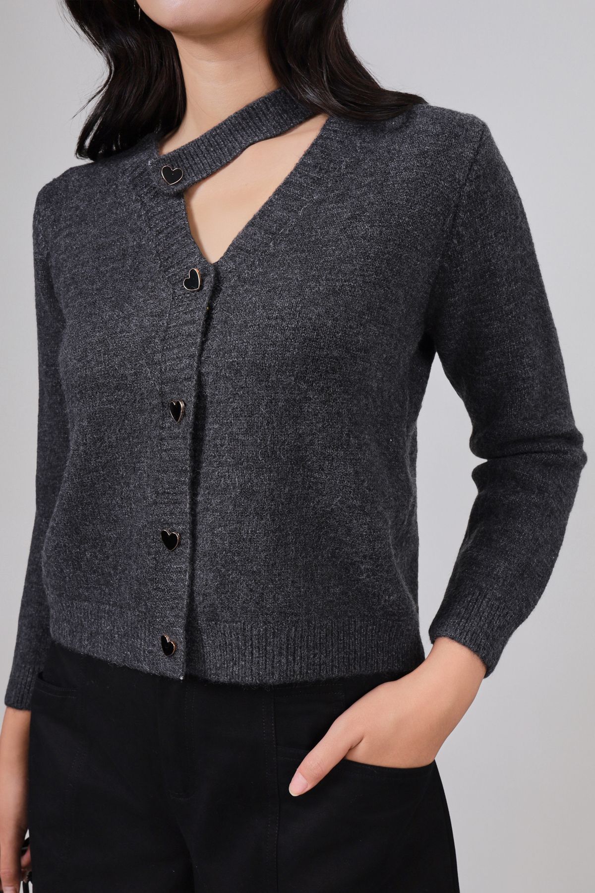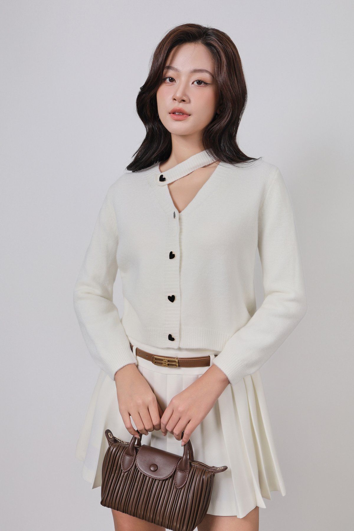 FOL617 - Áo len thời trang cao cấp dáng suông cổ xẻ V phối dây lệch dài tay thân áo phối khuy thời trang - PANTIO