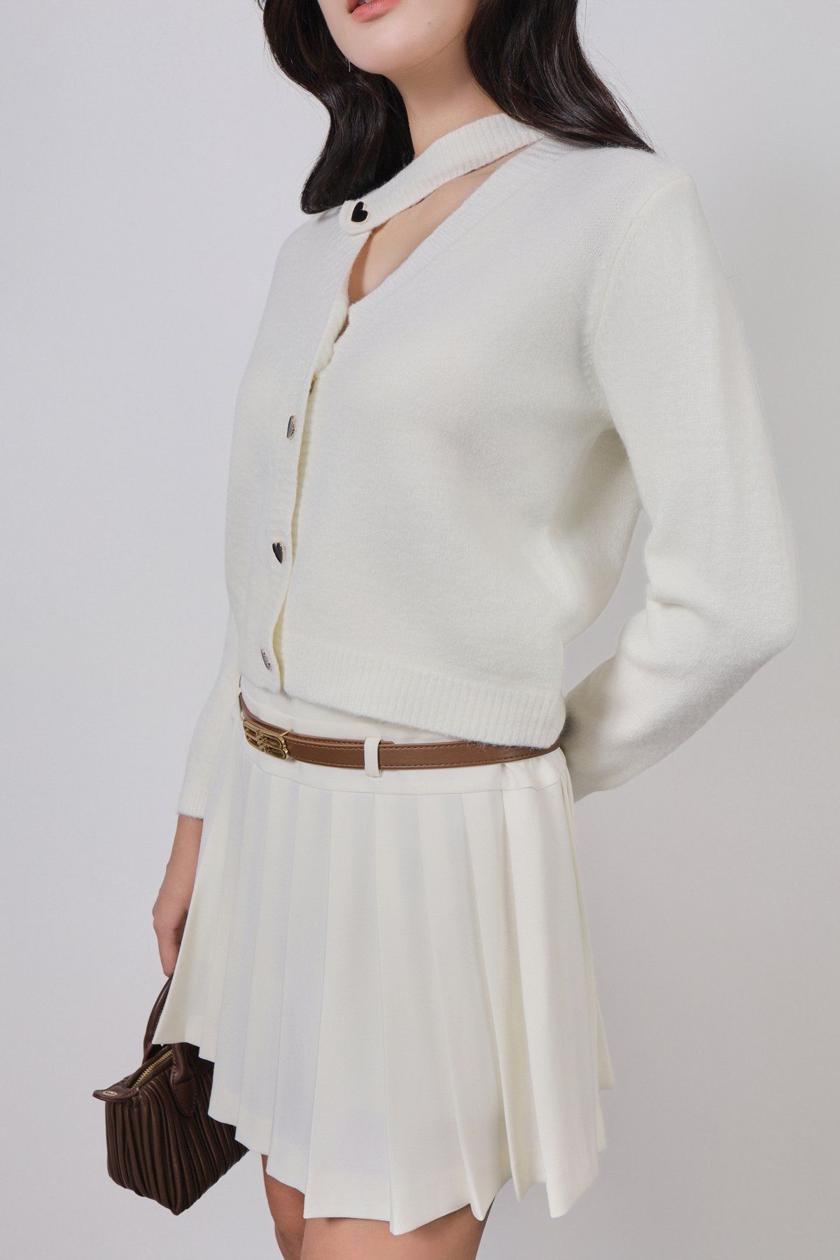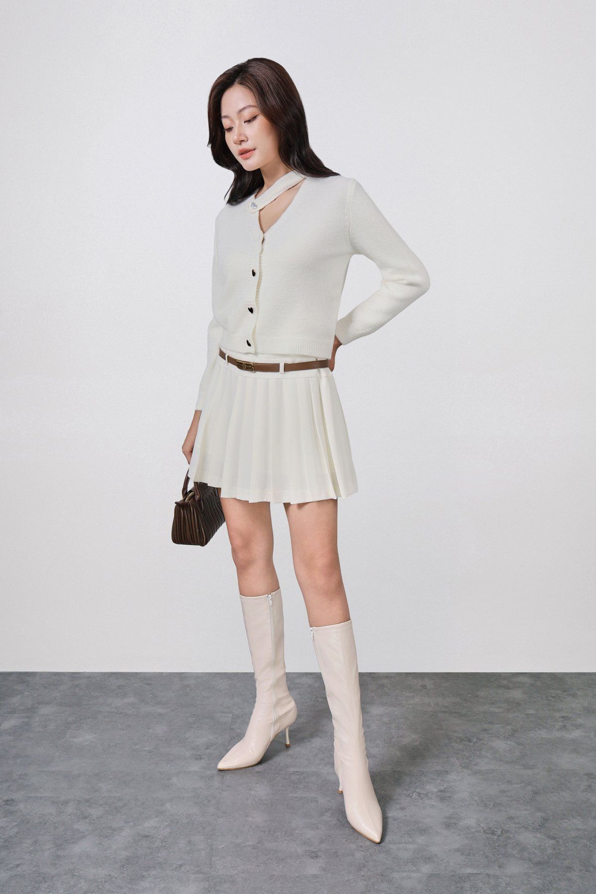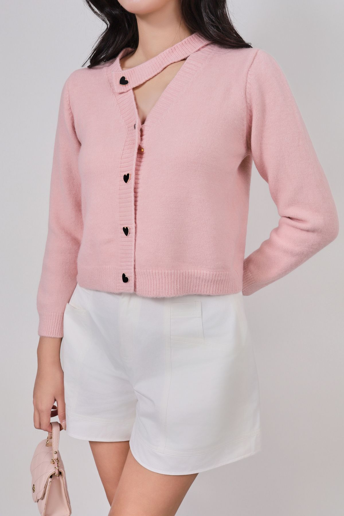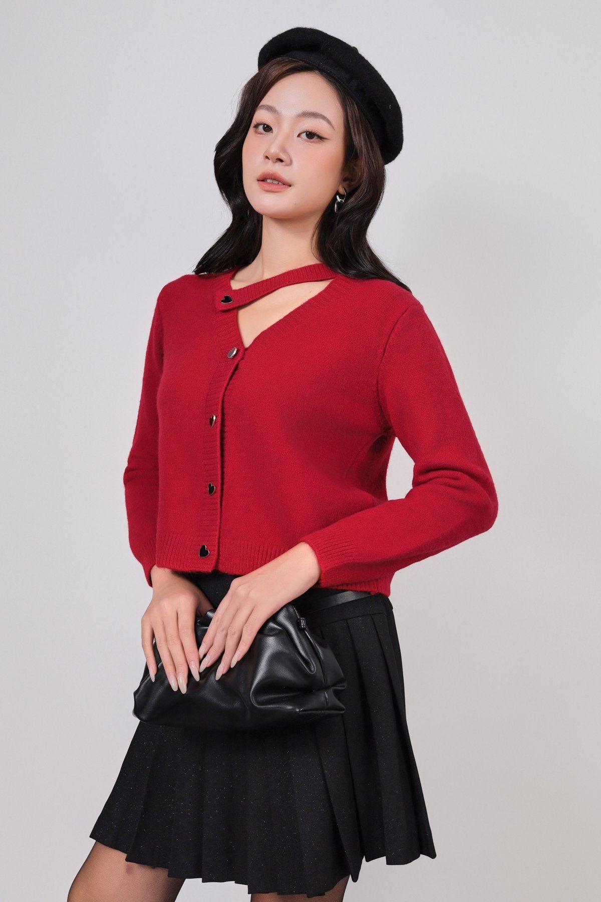 FOL617 - Áo len thời trang cao cấp dáng suông cổ xẻ V phối dây lệch dài tay thân áo phối khuy thời trang - PANTIO