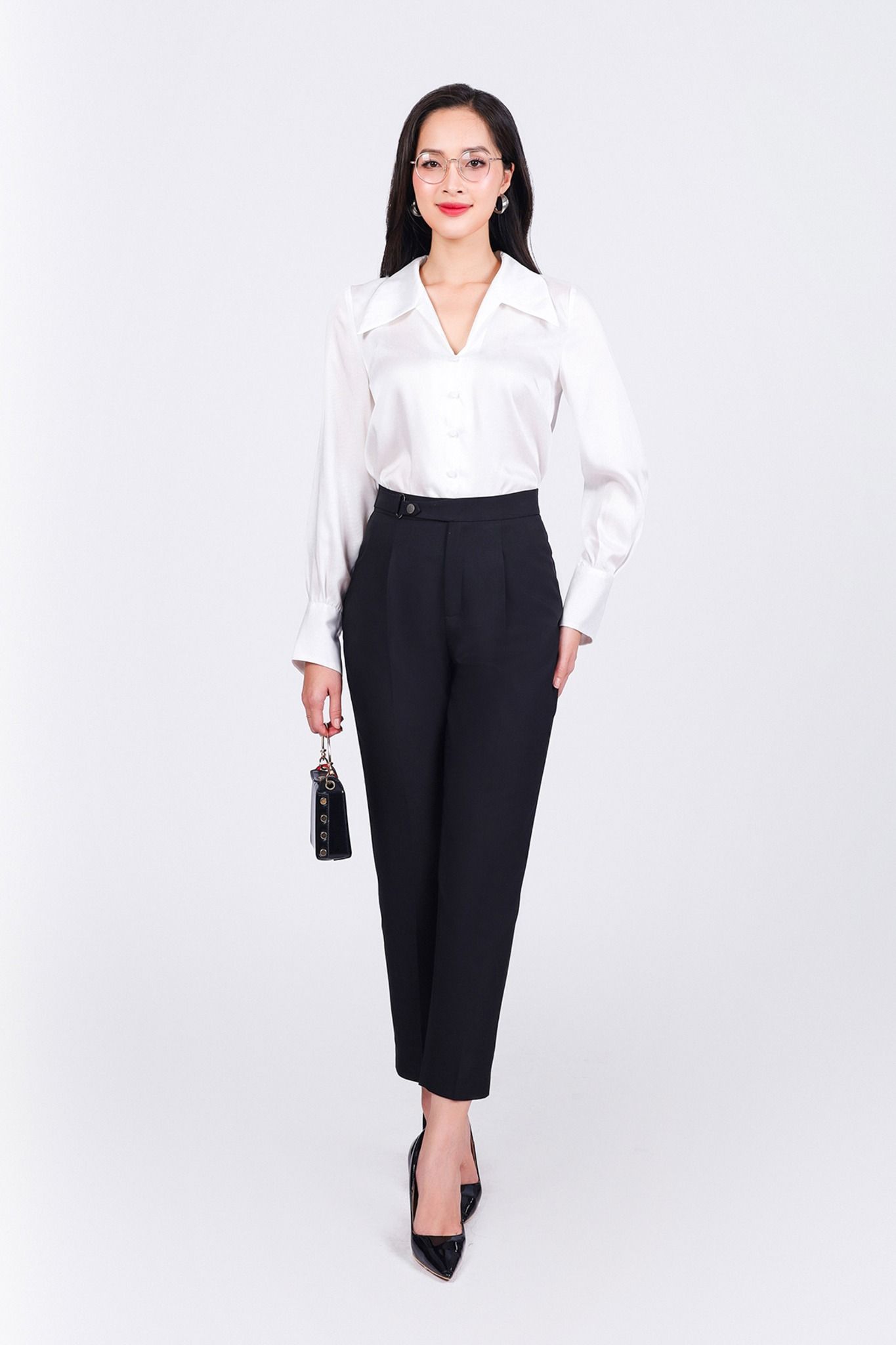 FQD51126 - Quần dài công sở vải tuytsi dáng baggy cạp phối kim loại trang trí - PANTIO