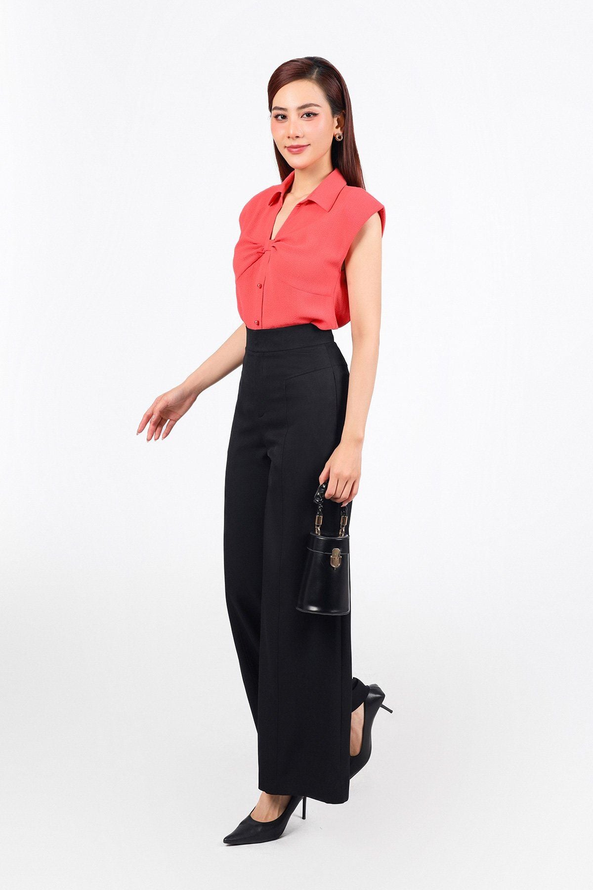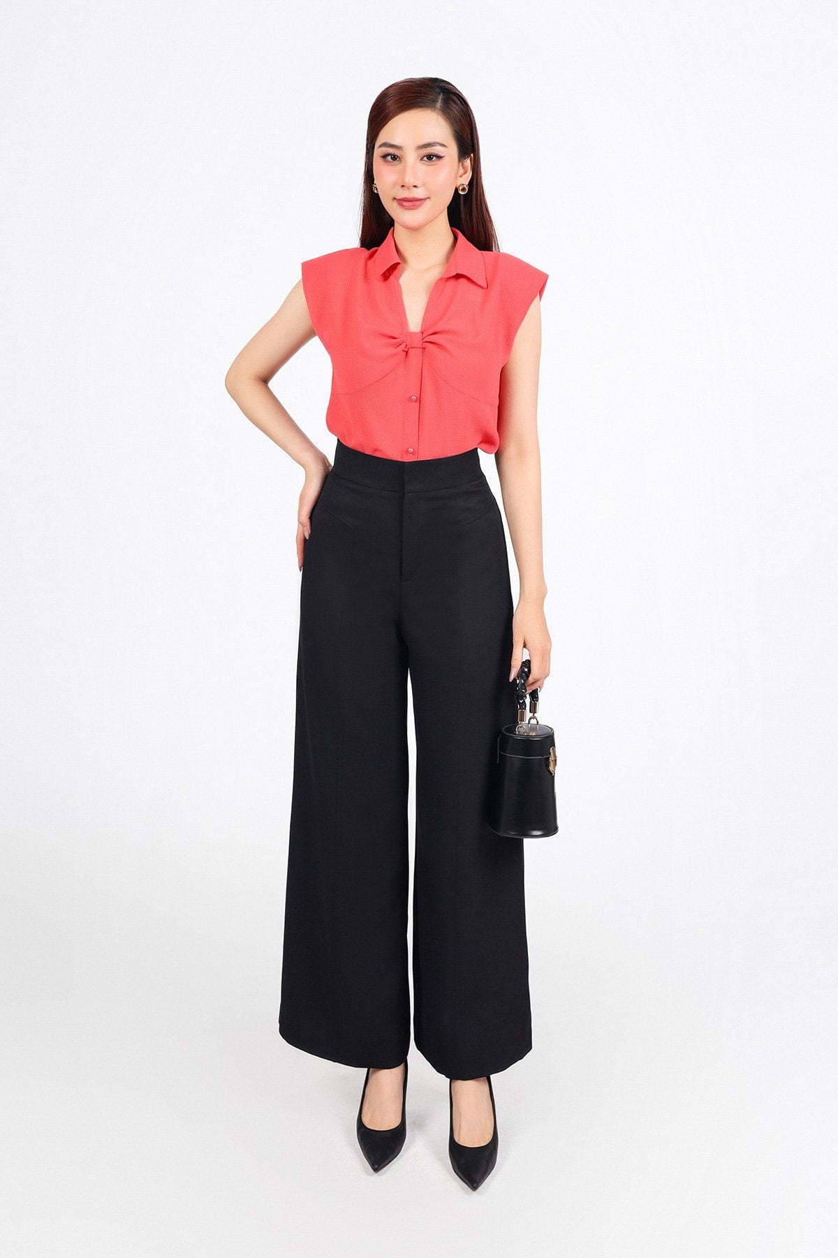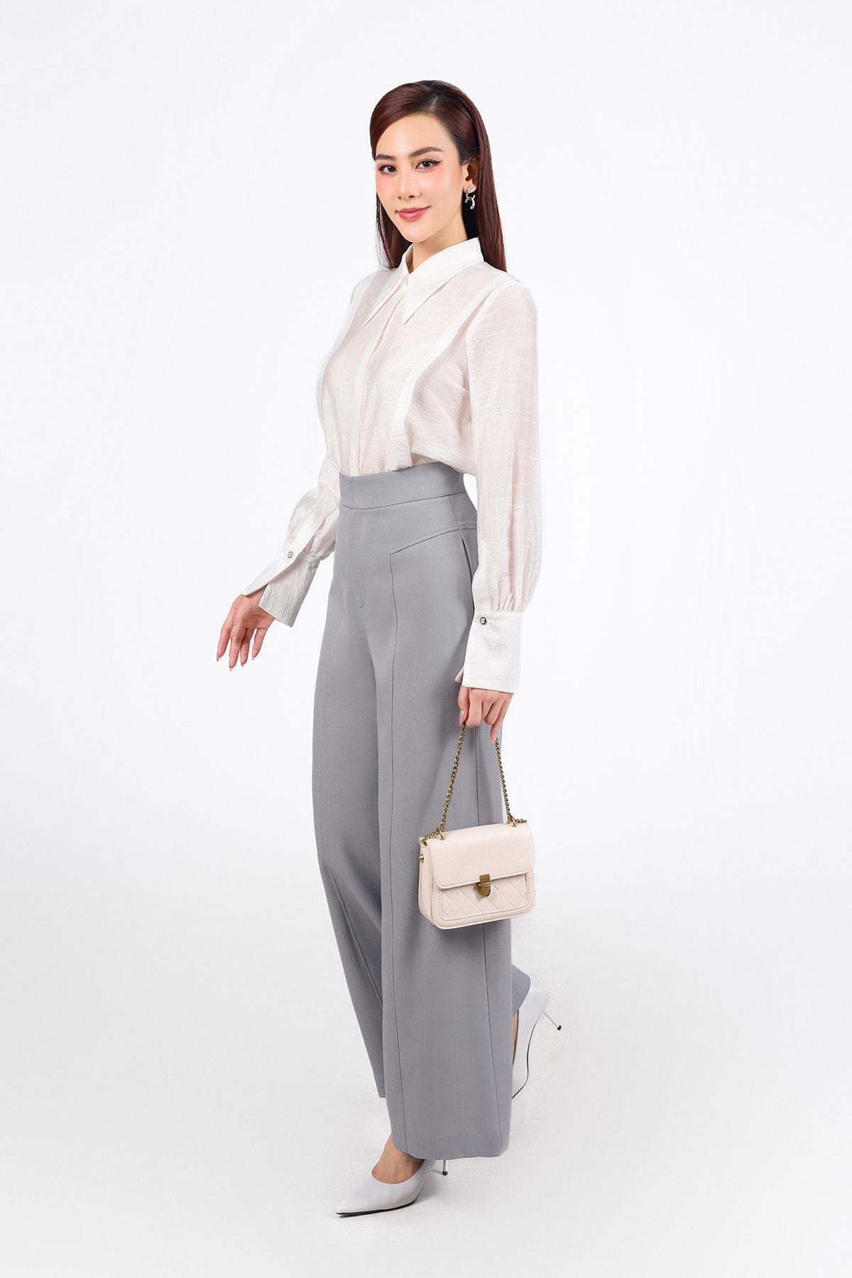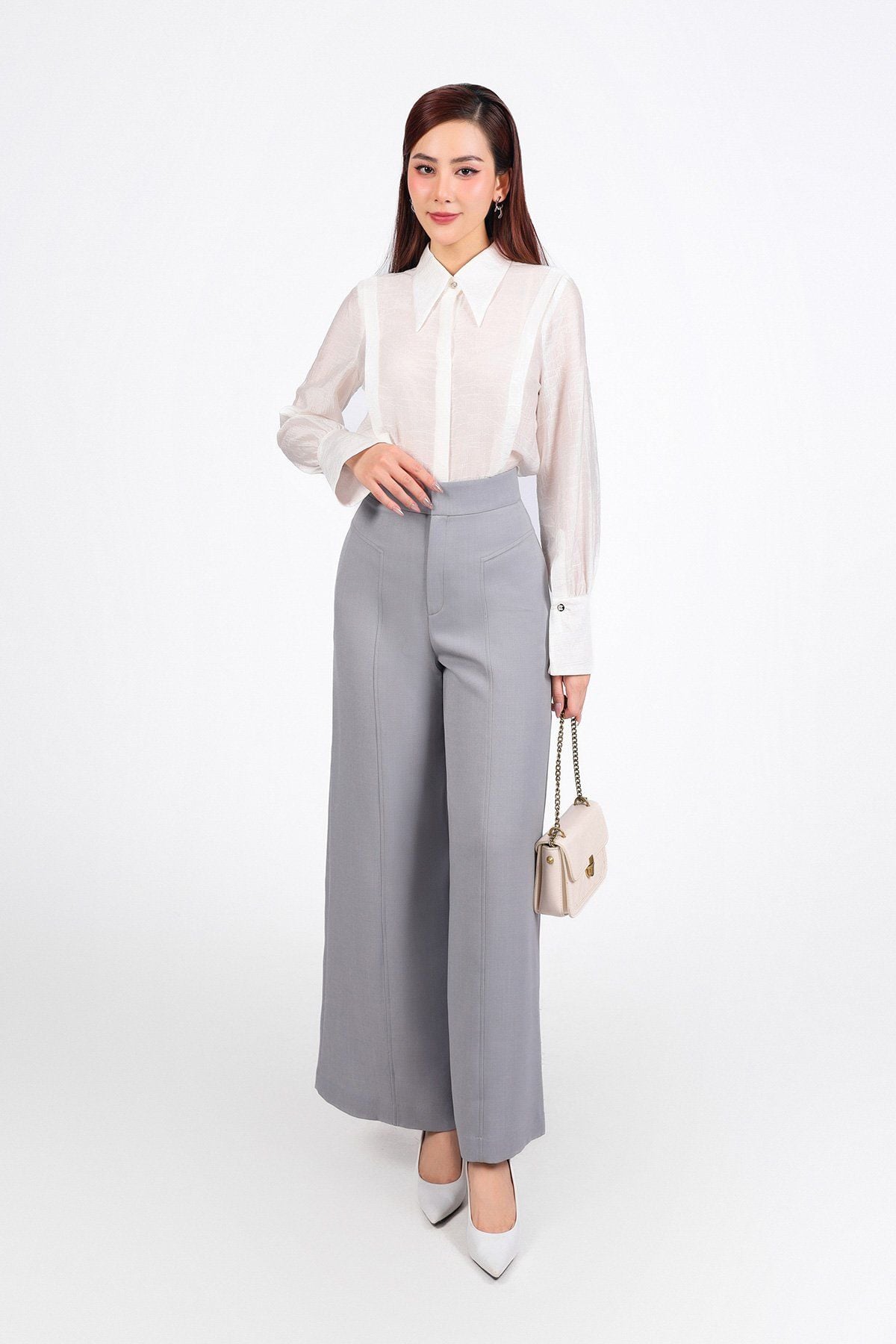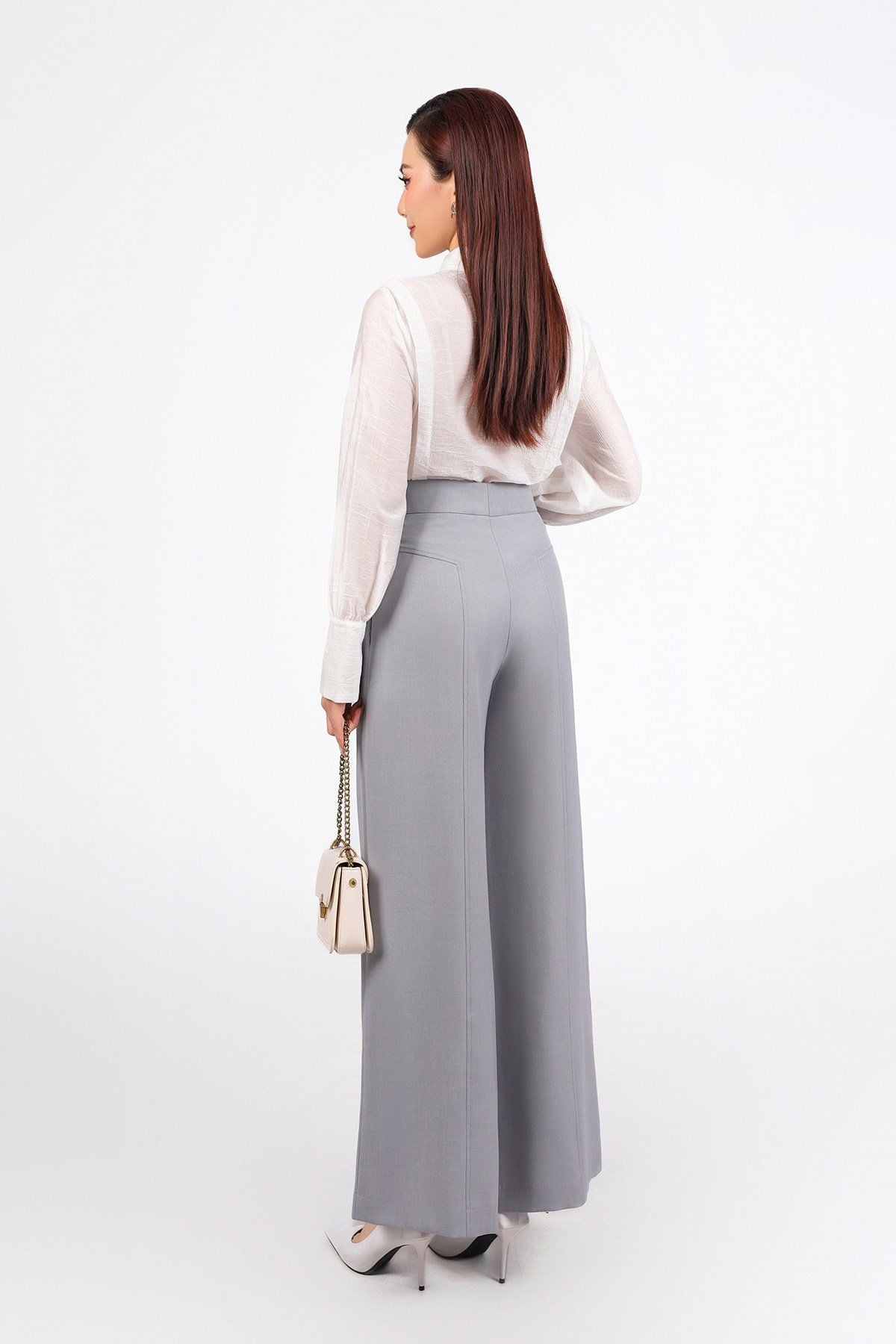 FQD51175 - Quần dài công sở vải tuytsi dáng suông ống đứng ống quần phối gân tạo kiểu khoá thân trước - PANTIO