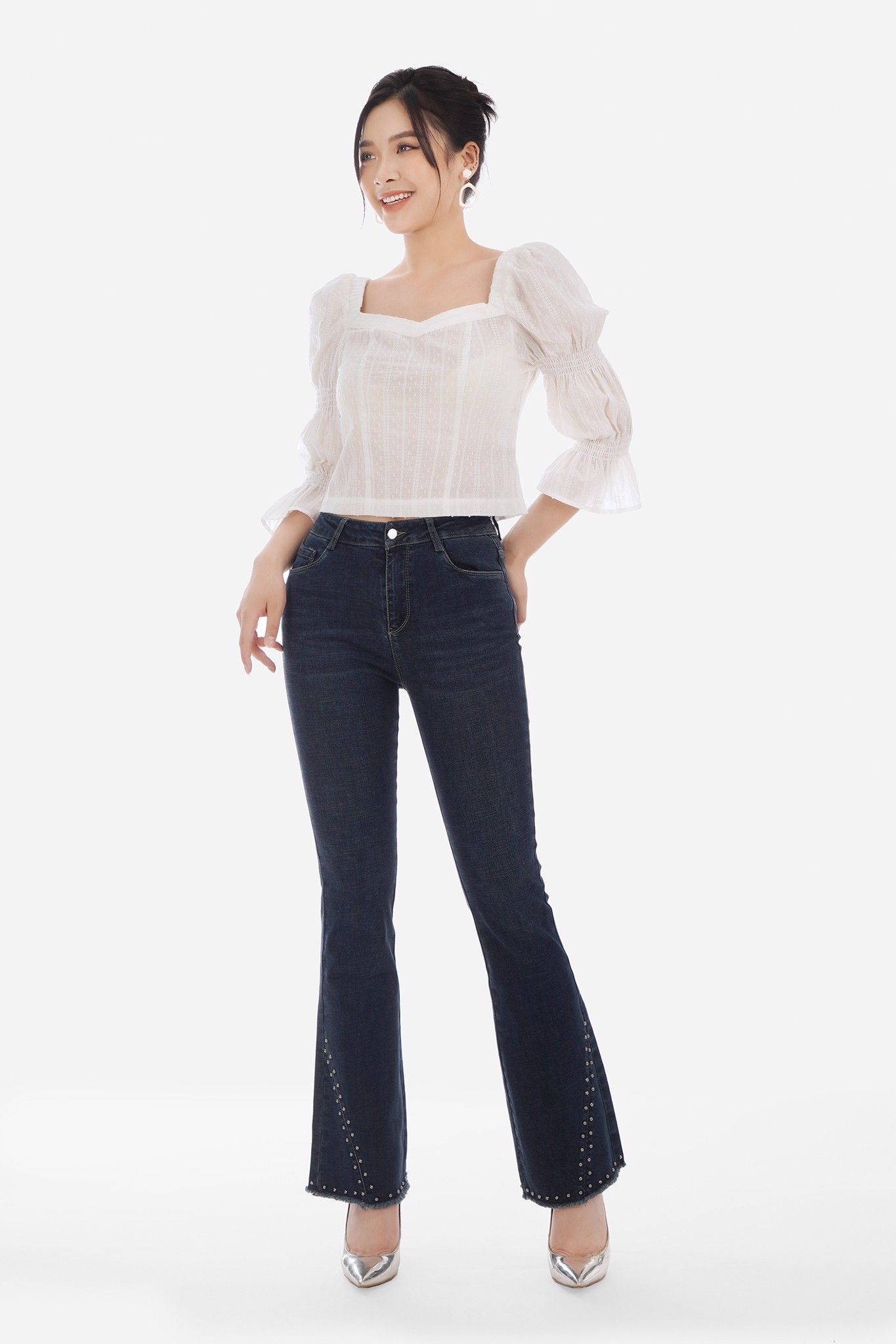 Quần Jeans là một Item chắc chắn phải có trong tủ đồ của mọi quý cô. Dáng quần ôm, loe nhẹ phần gấu, dễ phối đồ với những sản phẩm áo đa dạng phù hợp với nhiều phong cách khác nhau. Cạp ngang rốn và chất liệu co dãn dễ hoạt động trong cả ngày dài.