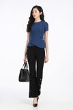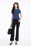 Quần thiết kế độc quyền bởi thương hiệu thời trang cao cấp Pantio. Mang hơi thở mới lên thiết kế quần âu tưởng chừng đã quá quen thuộc. Phần ống hơi loe rộng cùng chi tiết đinh tán ánh kím phía ống quần chính là điểm cộng nâng tầm phong cách thời trang cho nàng.
